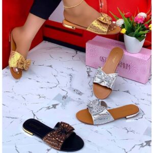 This is a ladies cute sandals made with quality material. These sandals are cute and smart, with a comfortable sole. These slippers can be wear to many occasions for different use, like outings, work, ceremony and many more places, add value to yourself and step out in styles.