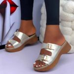 (S41) 2inches Stylish Gold Mules